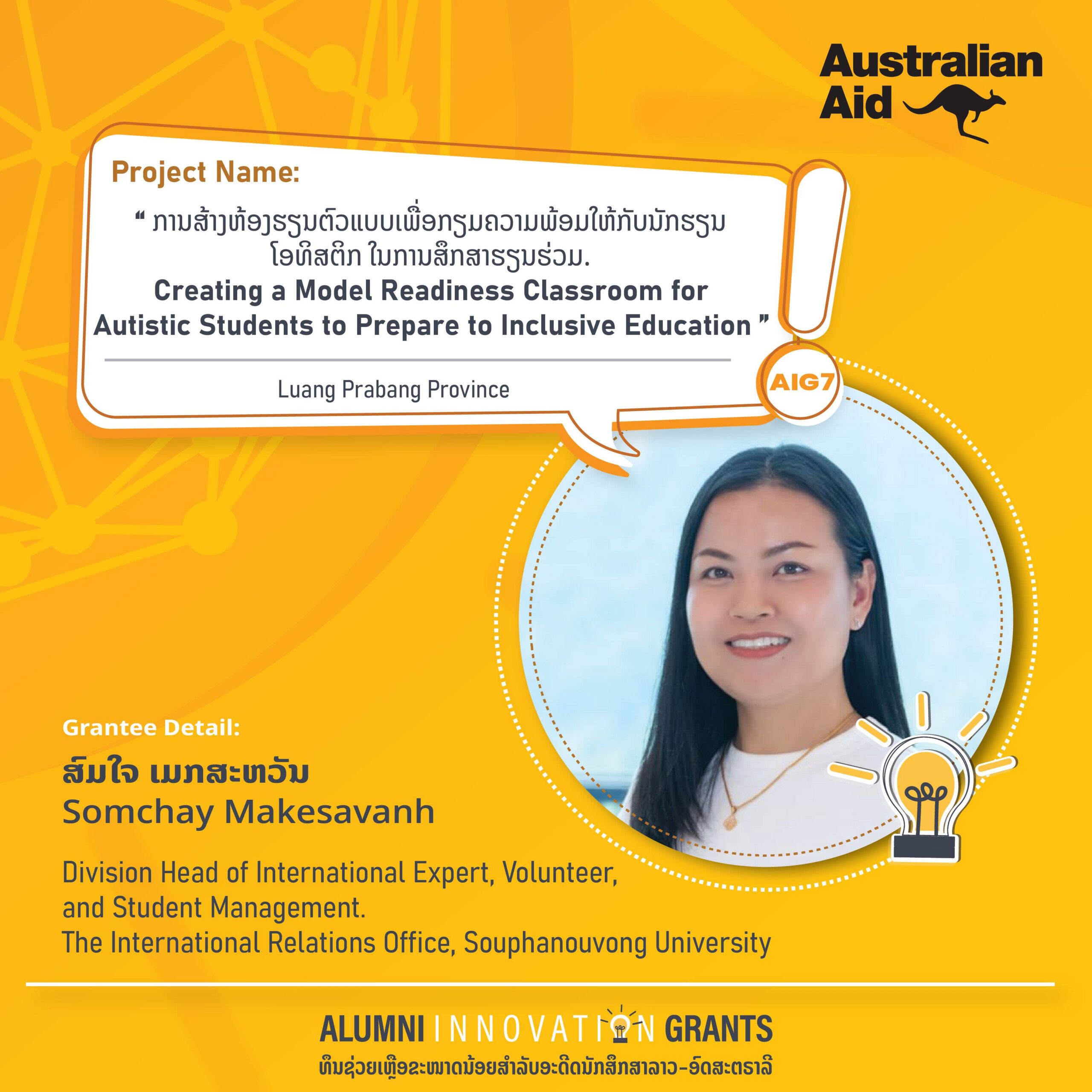 Her project “Creating a Model Readiness Classroom for Autistic Students to Prepare to Inclusive Education” will create an autism-friendly learning space at Sithan Primary school to support individualized learning and serve as a practical foundation for teacher training.